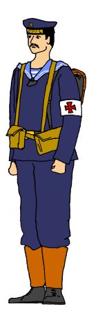 photograph of a Naval Medic in landing gear taken in China shortly after the Boxer Rebellion. He also wears the blue winter uniform as described above. Note the red