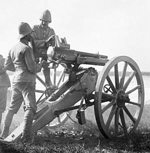 Maxim World Standard Machine Gun from 1887. The first Maxim guns deployed by the Germans for action